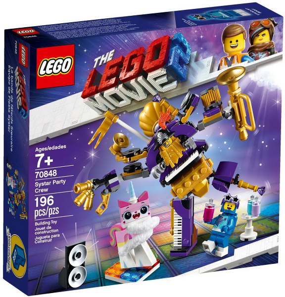 Kids can create an out-of-this-world party with 70848 Systar Party Crew! This fun-packed THE LEGO’ MOVIE 2′ set features the highly posable One-Man-Metal-Band toy mech, with a built-in MetalBeard minifigure head, gripping hand and lots of built-in musical instrument details. Fans of the movie will love dressing up THE LEGO MOVIE 2 character Stardust Benny with new-for-August-2019 star glasses and the Unikitty as Disco Kitty brick-built figure with a fluffy fabric feather boa. The set also includes a buildable multicolored dancefloor, loudspeaker and table topped with brick-built smoothie drinks to inspire kids to recreate movie scenes and make up their own stories.
