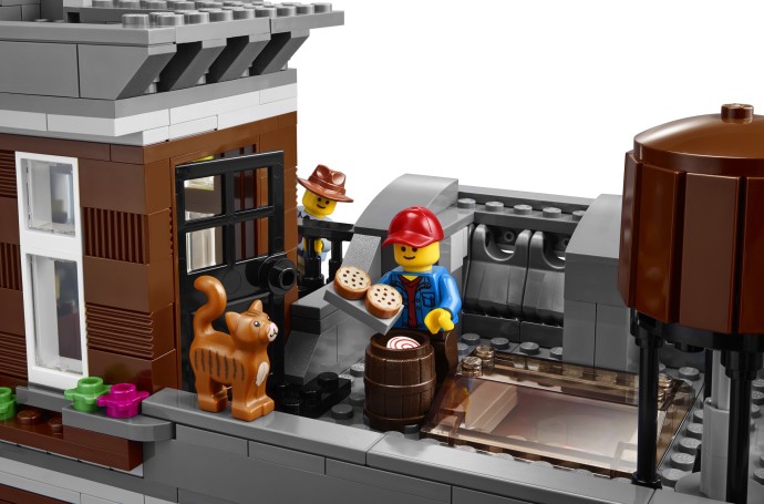 - Features a pool hall, barbershop, detective’s office, bathroom, kitchen, water tower and a cat