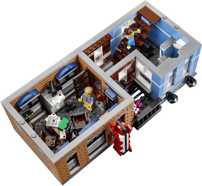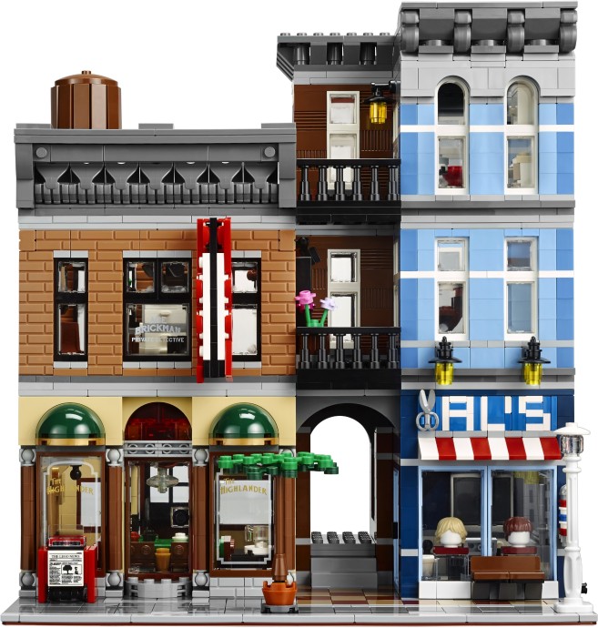 Discover a world of mystery and adventure with the LEGO® Creator Expert Detective’s Office! Step through the open archway and into the barbershop, where seated customers are pampered in the reflection of a large wall mirror, while next door, competitors play pool and darts beneath the comforting whir of a rotating ceiling fan. Venture to the first floor and you’ll find the detective’s office, his desk strewn with clues, a safe containing valuable evidence and a concealed wall compartment. Then visit the adjacent bathroom, featuring a classic pull-chain toilet, before taking the stairway to the well-equipped kitchen, from where you can access the roof terrace, complete with large water tower. This latest addition to the LEGO Modular Building series is packed with unsurpassed detail and hidden surprises. Easy-to-remove roof and ceilings provide access to the delightful interior, while the exterior of the building features a decorative roofline and a beautifully designed façade. Can you solve the smuggling mystery? Includes 6 minifigures with assorted accessories: Detective Ace Brickman, Al the barber, dart player, pool player, police woman and a mysterious lady in red.
