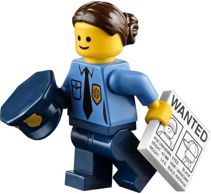 - Accessories include Ace Brickman’s brimmed hat, briefcase, magnifying glass and a police hat