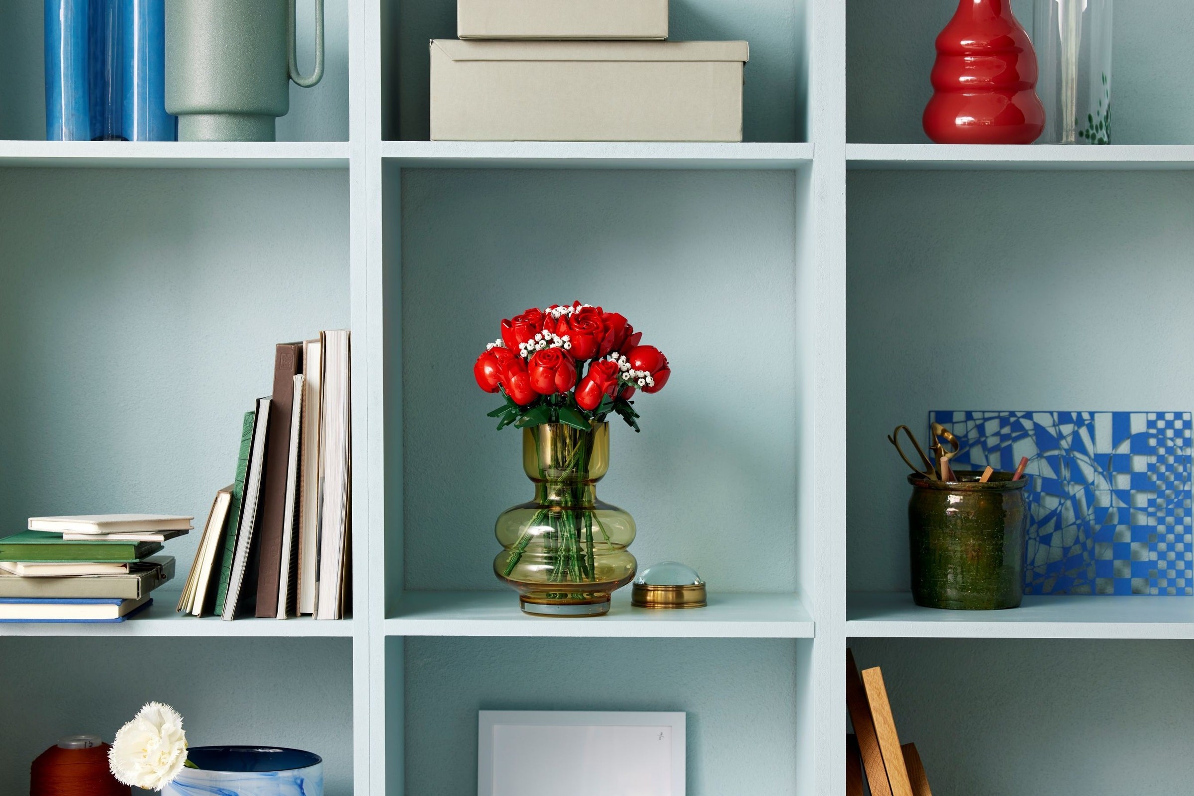 - Buildable home decor bouquet – Indulge yourself or join friends and family for a mindful project with the LEGO® Icons Bouquet of Roses building set for adults