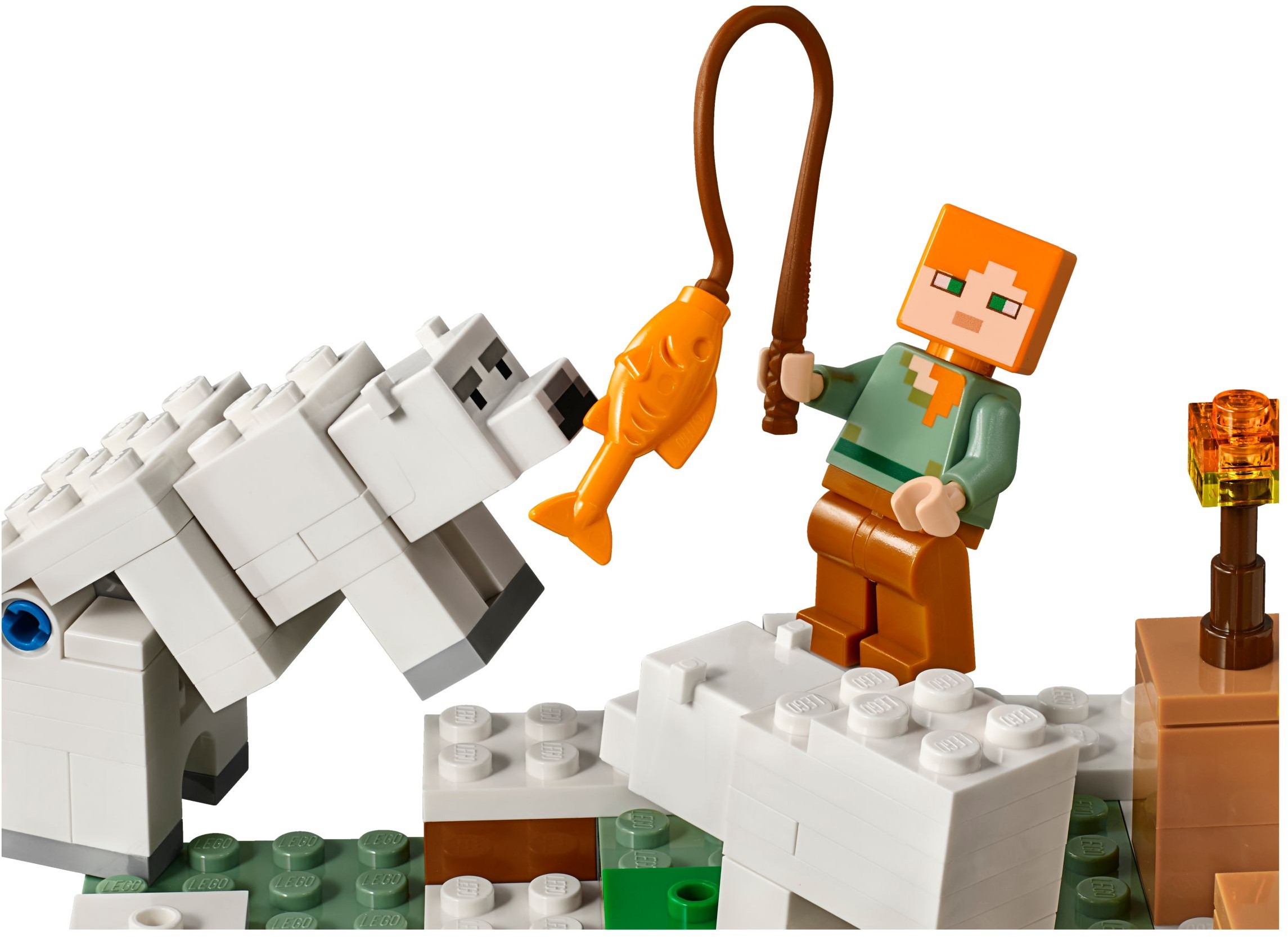 - Includes an Alex LEGO’ Minecraft’ minifigure, plus stray, polar bear and baby polar bear figures.