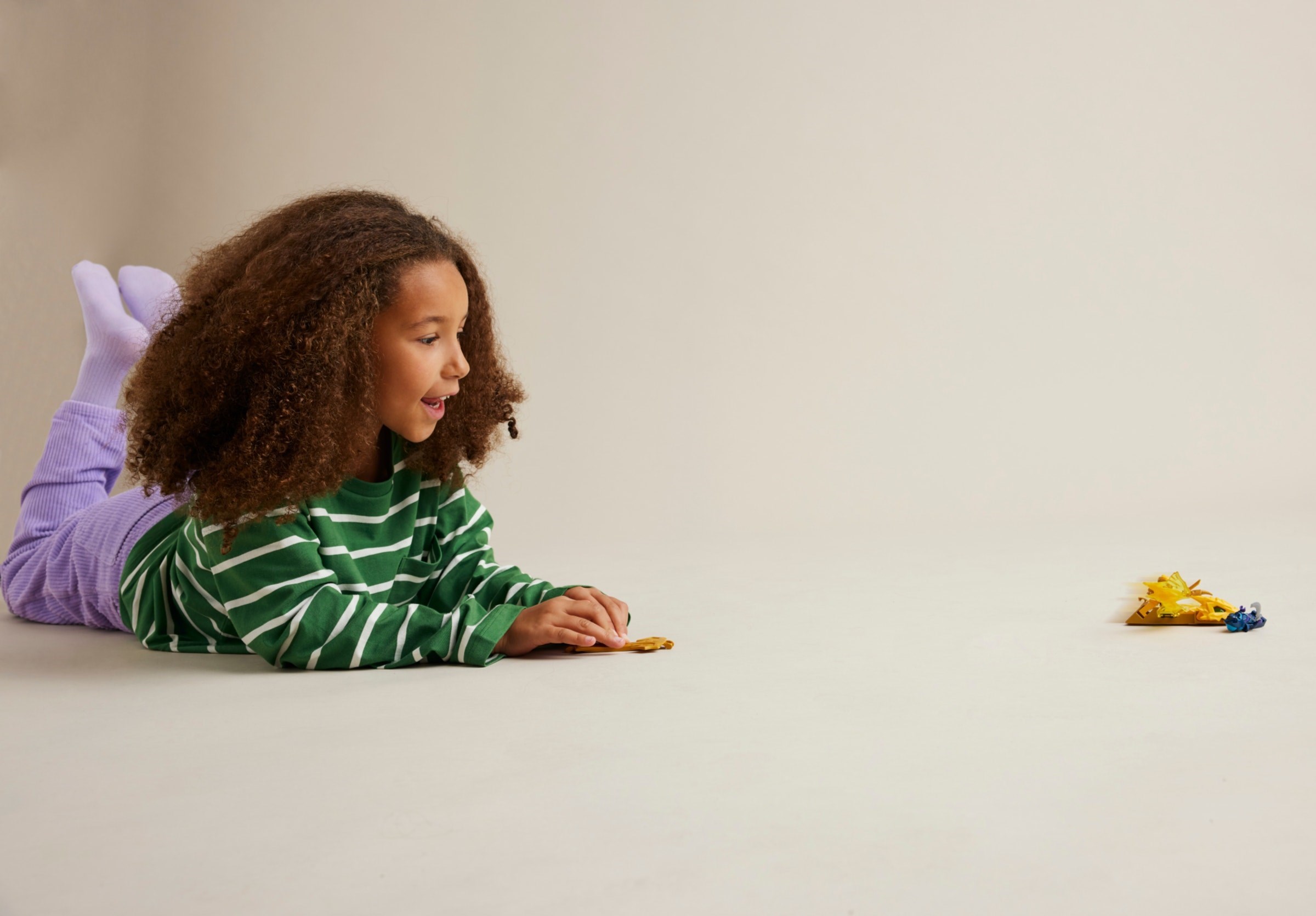 This dragon gift comes with 2 minifigures: Rising Dragon Arin, who has a katana accessory and can ride on the dragon’s back, and a Wolf Mask Warrior with hisown sword accessory. Kids can stage clashes between the ninja figures to win the vibrant green dragon power element from inside the yellow dragon toy’s posable mouth.