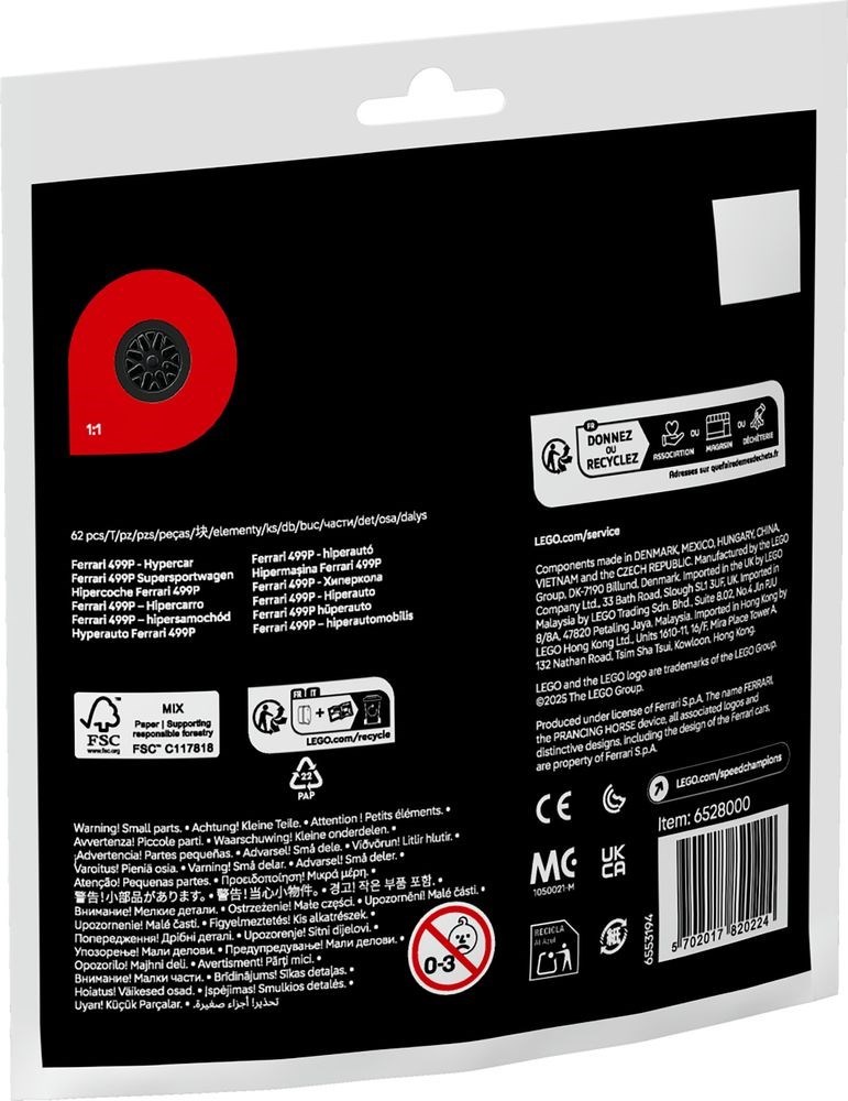 Ferrari fans and kids aged 7 and up can now build, display and play out racing action with this brick-built mini scale model of the famous Ferrari 499P – Hypercar.