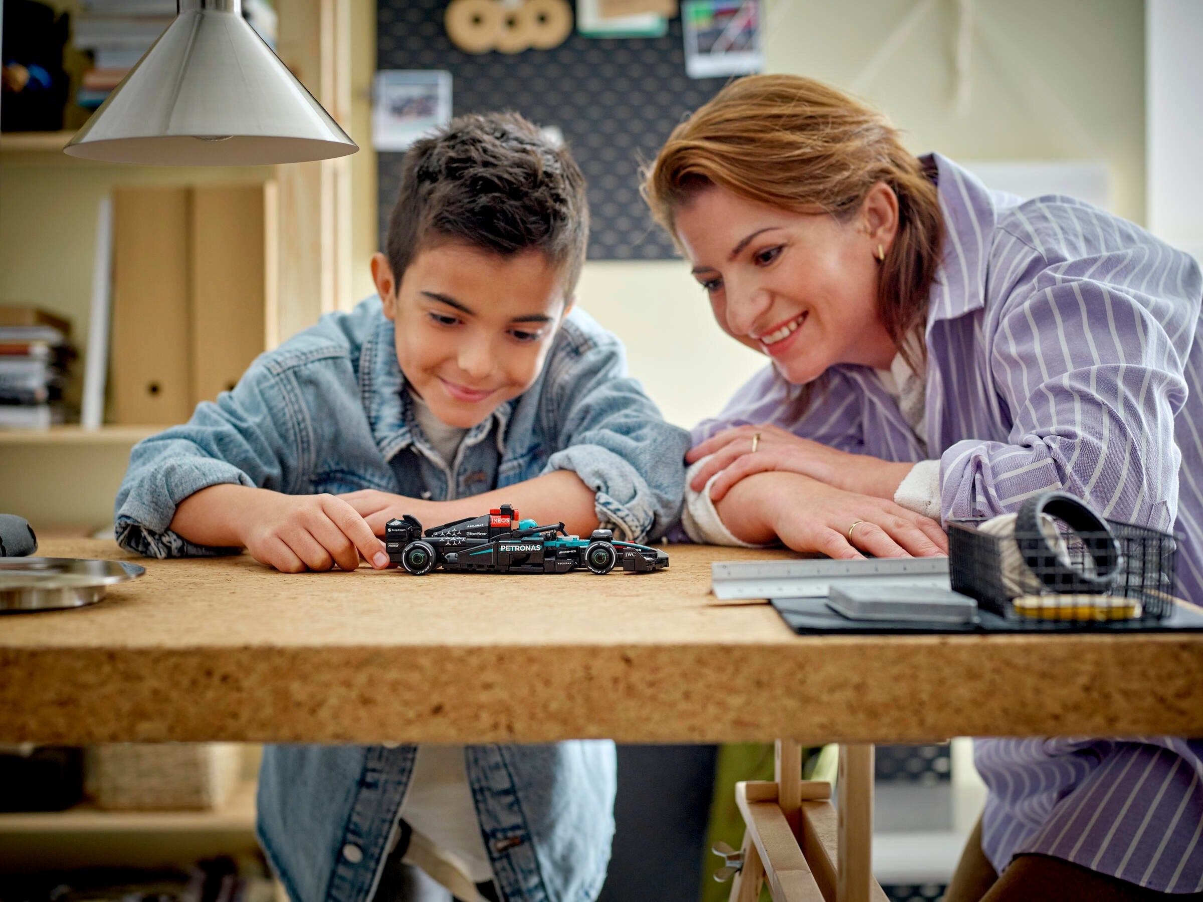 • F1® race car display model – After kids have enjoyed playing out racing stories with the Mercedes-AMG PETRONAS F1 Team toy, they can display it on a shelf or bedside table
