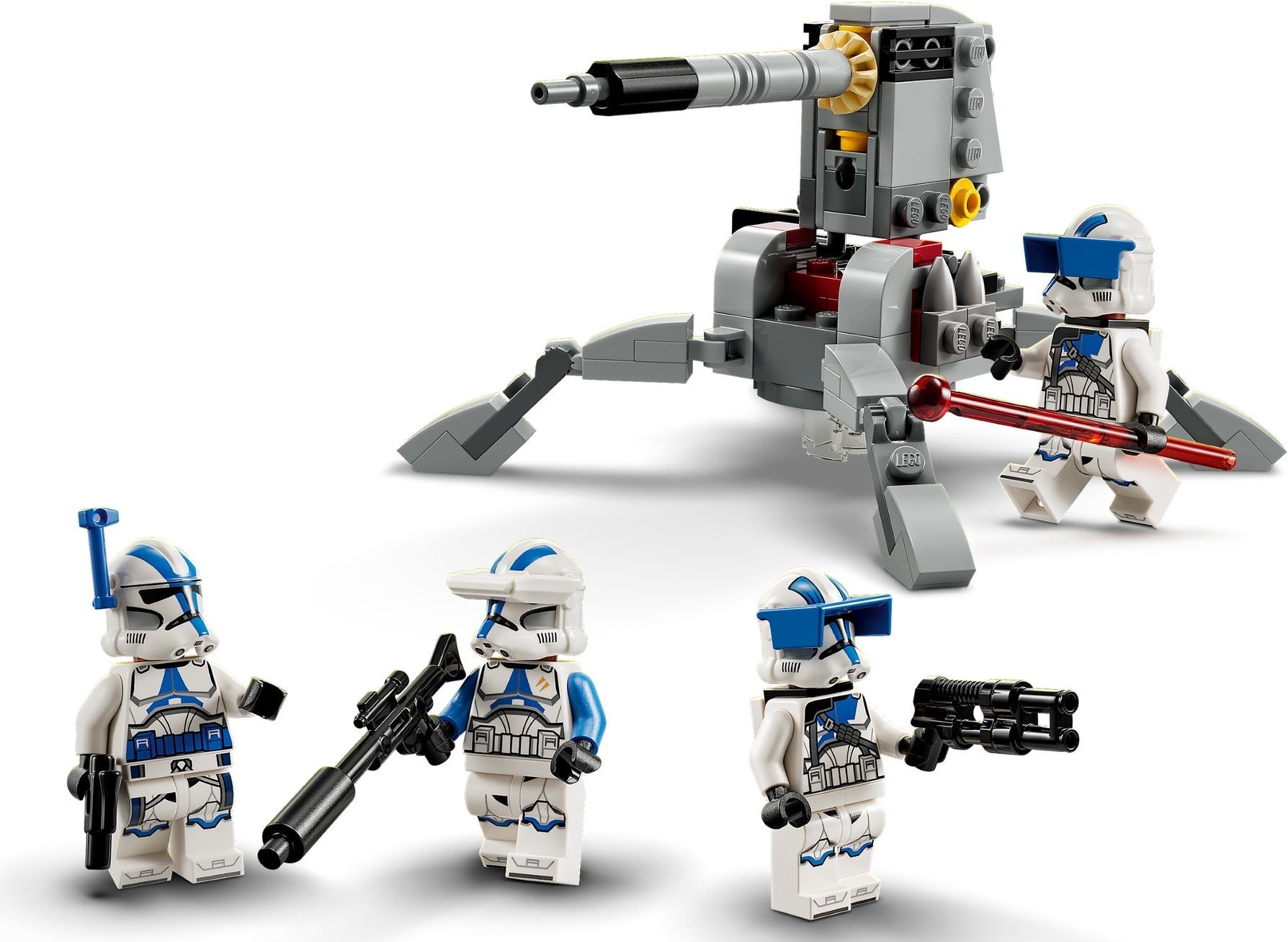 - 4 LEGO’ Star Wars’ minifigures ‘ A 501st Officer with a blaster pistol, a 501st Clone Specialist with a blaster rifle and 2 501st Heavy Troopers, each with a blaster