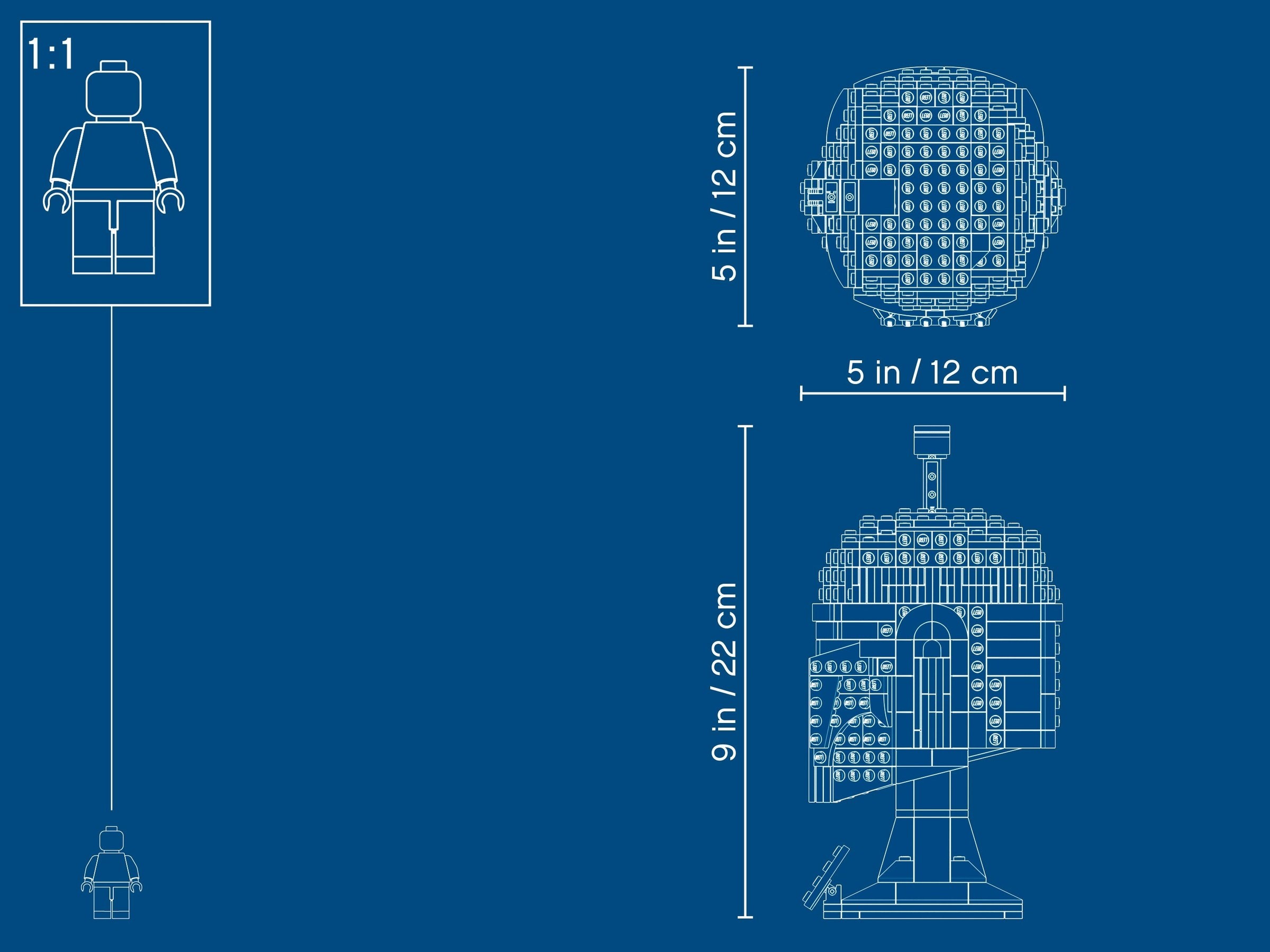 - This LEGO® Star Wars™ Boba Fett Helmet measures 8.5” (21cm) high, 4.5” (11cm) wide and 4.5” (11cm) deep – it doesn’t take up lot of space, but its striking details are sure to delight any Star Wars fan.