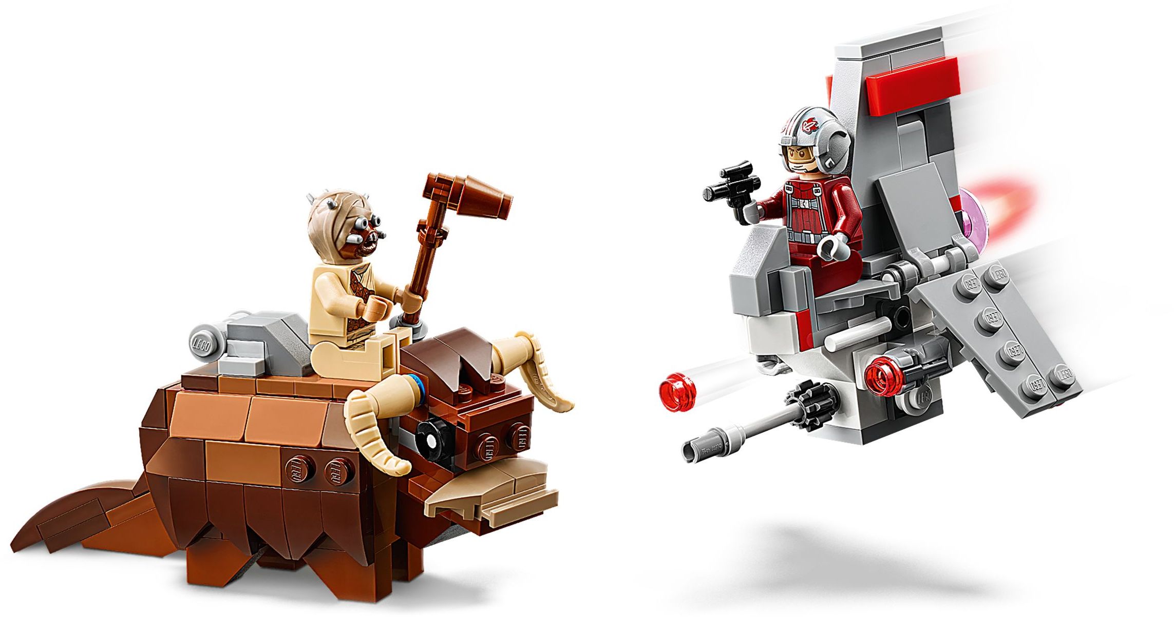 - Young kids will love role-playing duels and creating their own exciting stories with this LEGO’ Star Wars‘ Microfighters starship toy building set (75265), featuring quick-to-build T-16 Skyhopper and Bantha models.