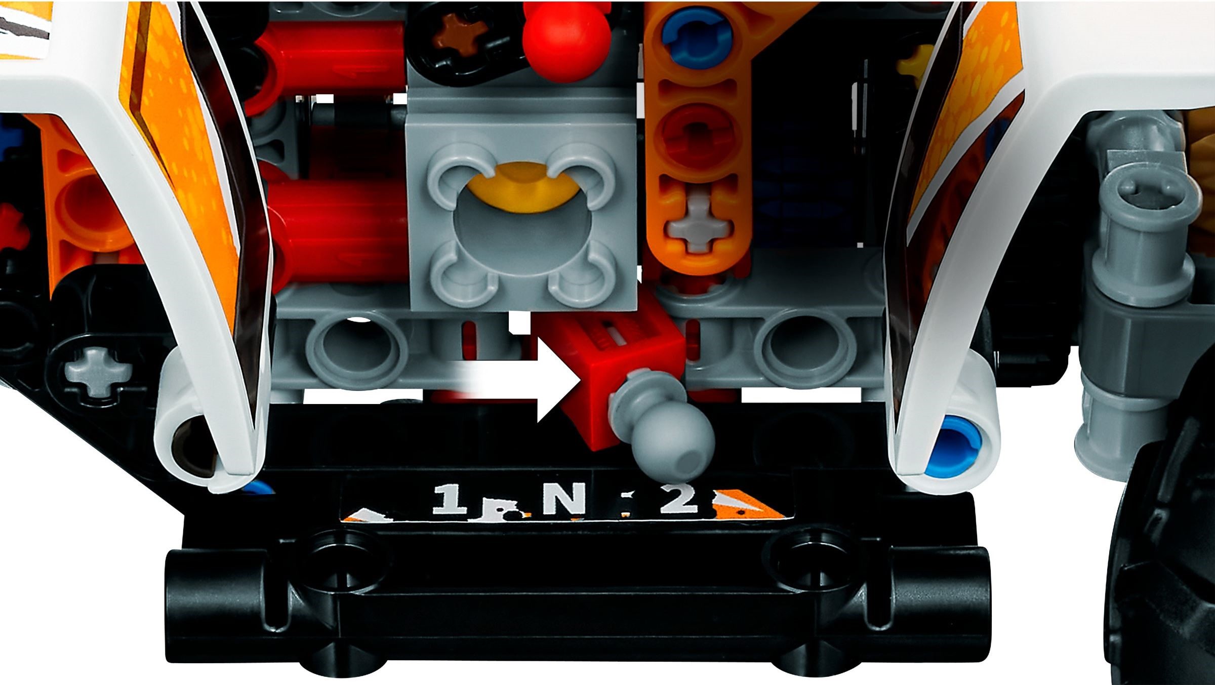 - Realistic features – This vehicle is the first 6-wheeled ATV from LEGO® Technic™ and comes with lots of authentic features, like the engine with moving pistons and 2-shift (+ neutral) gearbox