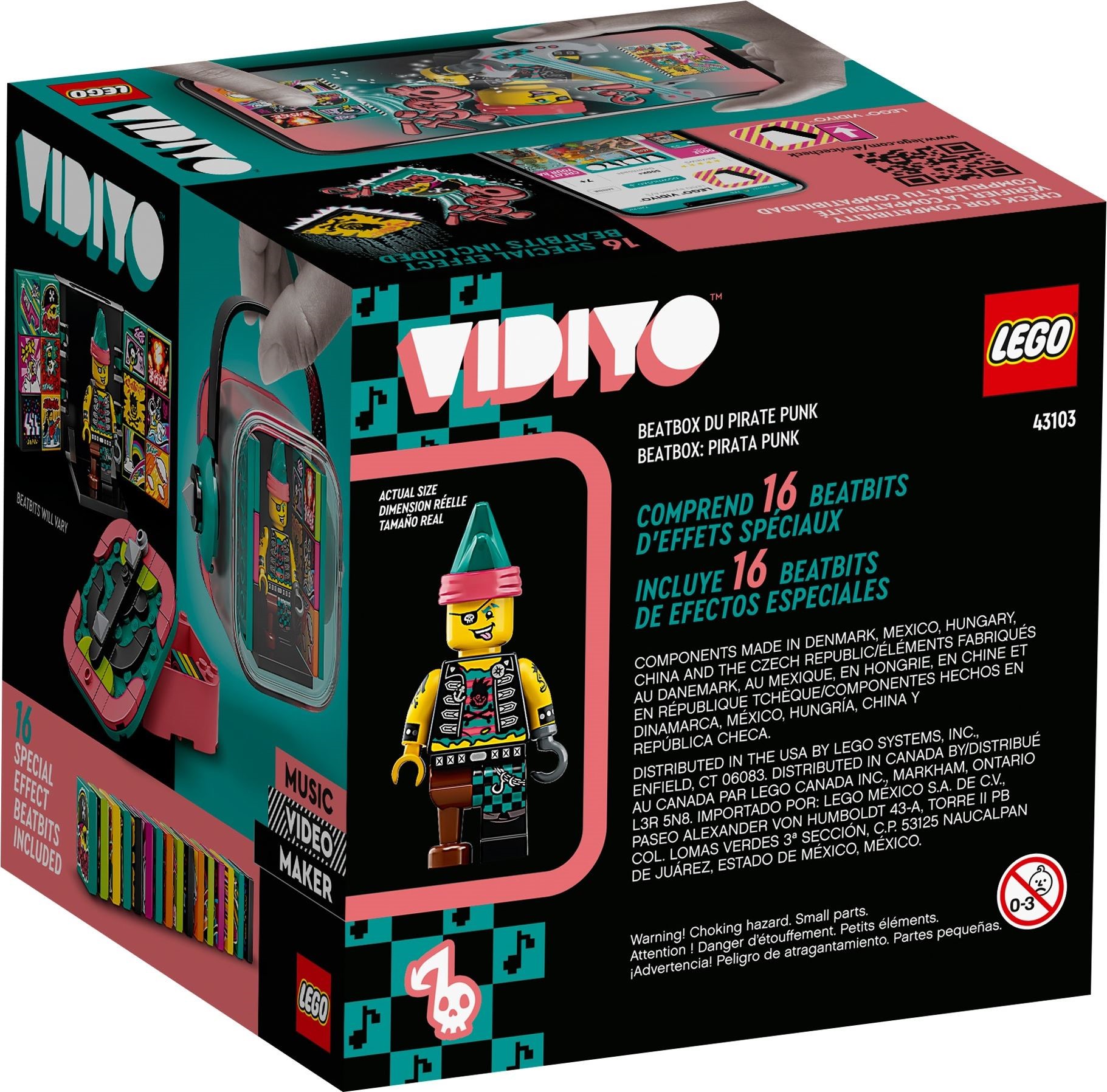 - Inspire kids to direct and star in their own music videos with the LEGO’ VIDIYO’ Punk Pirate BeatBox (43103). Includes a punk pirate minifigure with guitar, 14 random BeatBits and 2 special BeatBits.
